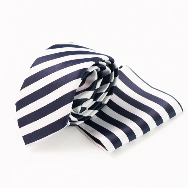 Blue & White Striped Tie & Pocket Square Set | Premium Men’s Formal Striped Tie | Classic Blue & White Design